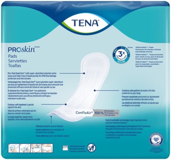 - Light and airy 2-piece pad and pant system design is open on the sides, leaving more skin surface exposed to the air. Secure the pad with breathable TENA Comfort Pants.